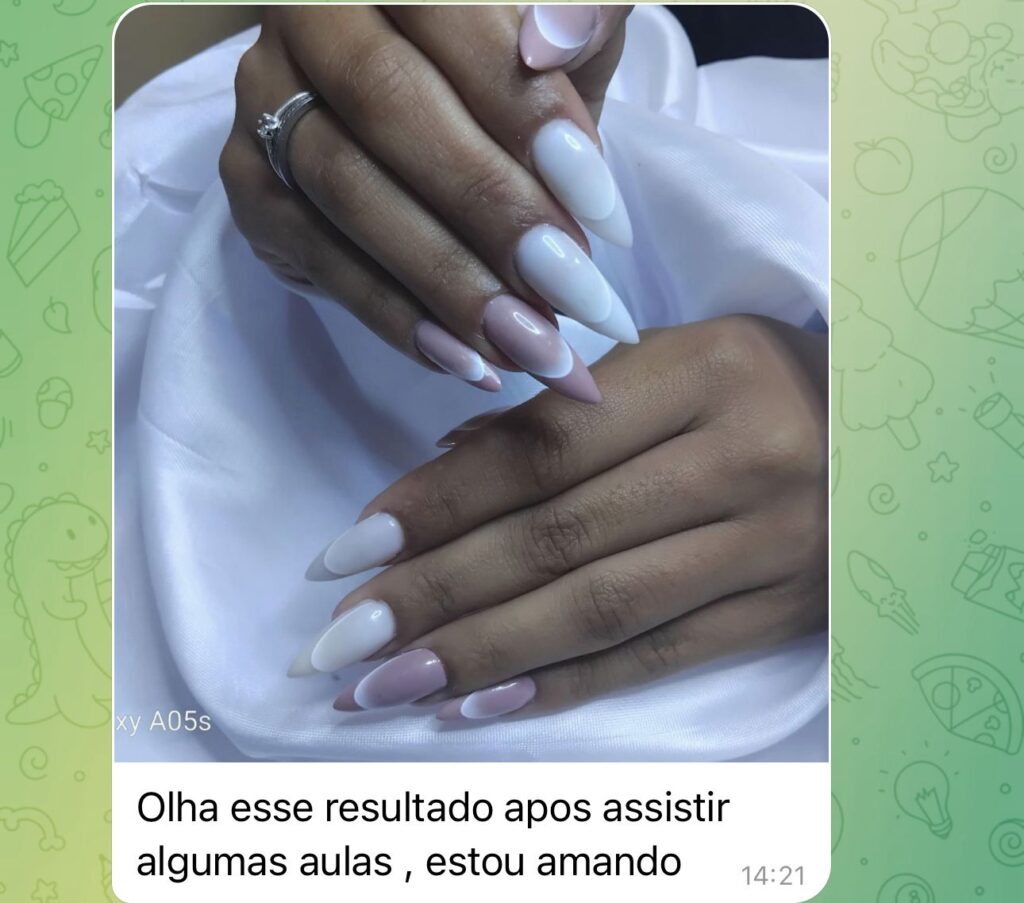 Todas as aulas foram pensadas e desenvolvidas de forma minuciosa para que você aprenda tudo e se torne uma verdadeira especialista em Alongamento de Unhas, mesmo que esteja começando do zero.